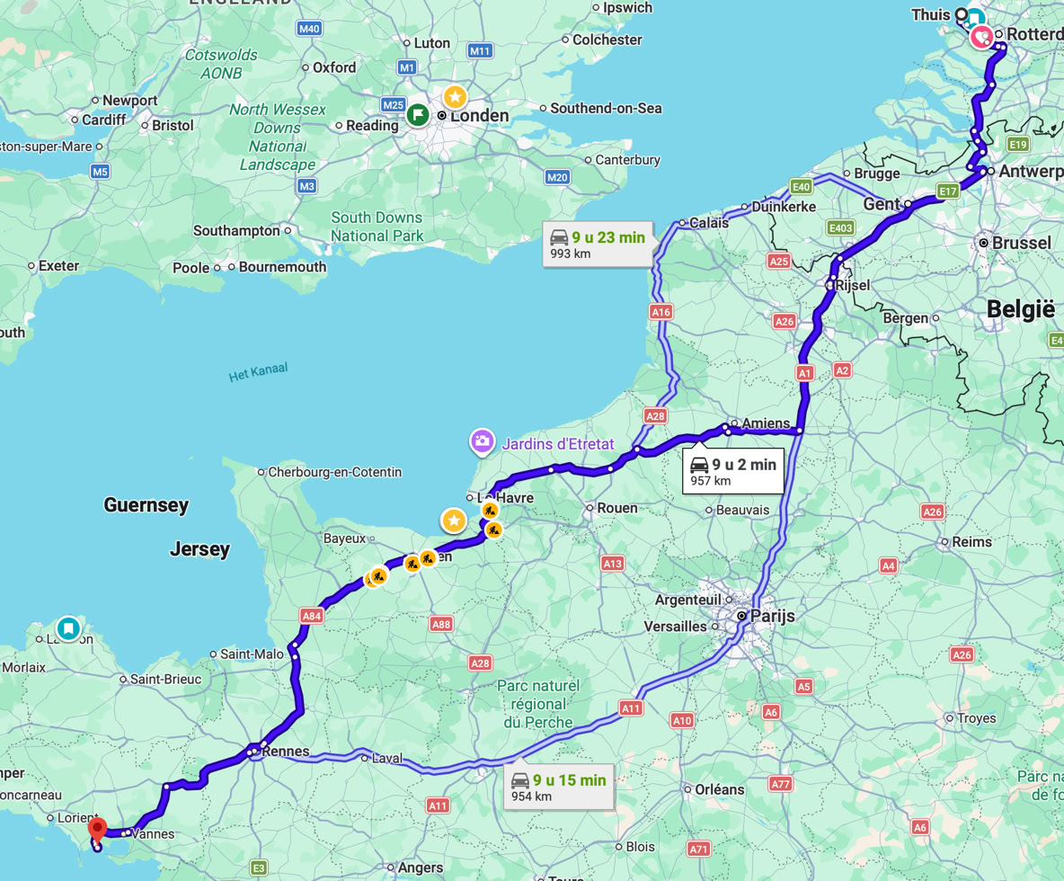 Halverwege juni gaan Onno en ik een dikke week naar Bretagne. Heerlijk om nog net voordat het zomerseizoen in Nederland begint er nog even tussenuit te gaan. We gaan met onze auto naar Locmariaquer. Dit dorpje ligt op een schiereiland op het kruispunt van de golf van Morbihan en de baai van Quiberon. Hier zijn we al vaker geweest. Alleen hebben we nu een andere camping uitgekozen. We gaan nu naar camping de la Tour. Hier hebben we een stacaravan gehuurd. Natuurlijk gaan we een reisverslag bijhouden van onze reis.